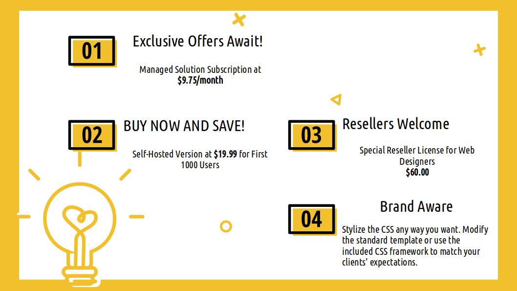 Don't miss out the limited-time offer for a 180-seat reseller license. Enjoy royalty-free distribution of kQuote with open-source code for modification and customization.